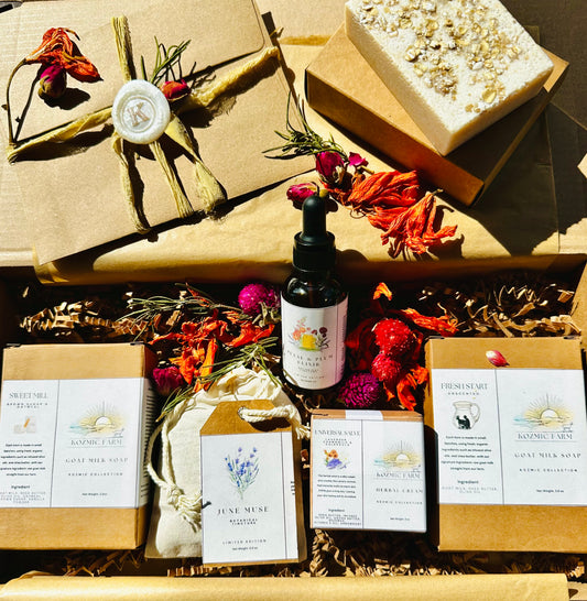 Join the Kozmic Reserve. An exclusive monthly subscription box featuring limited edition goat milk soaps and botanical infusions. Each Reserve Box is a curated experience of our finest small-batch designs, delivered fresh from our farm to your door. Limited spots available each month.